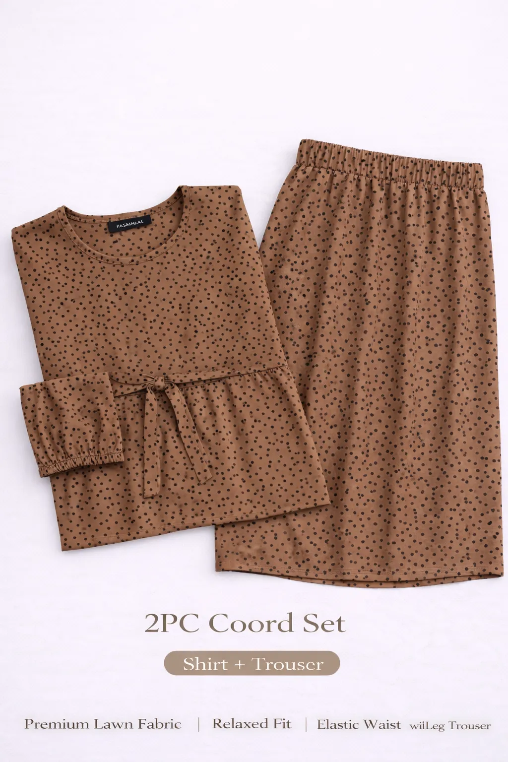 Pashmaal Cocoa Dot Charm 2PC Coord Set | PCS-006